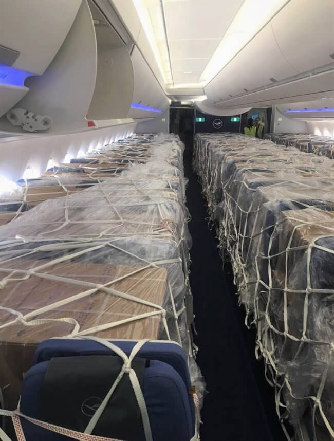 Cabin view of a qatar airways airbus a350.