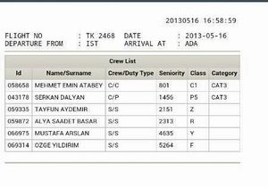 Uçağın ekip listesi şu isimlerden oluşuyor Flaş, flaş… türk hava yolları'nda ikinci gününe giren grev not: Kabin içi tüm yolcu işlemlerini pax ekranlarına taşıyan thy'nin kabin amirleri artık sadece ipad'e birkaç dokunuşla Figen eren(kabin amiri), perihan özden, ulvi murat eskin ve yasemin vural.